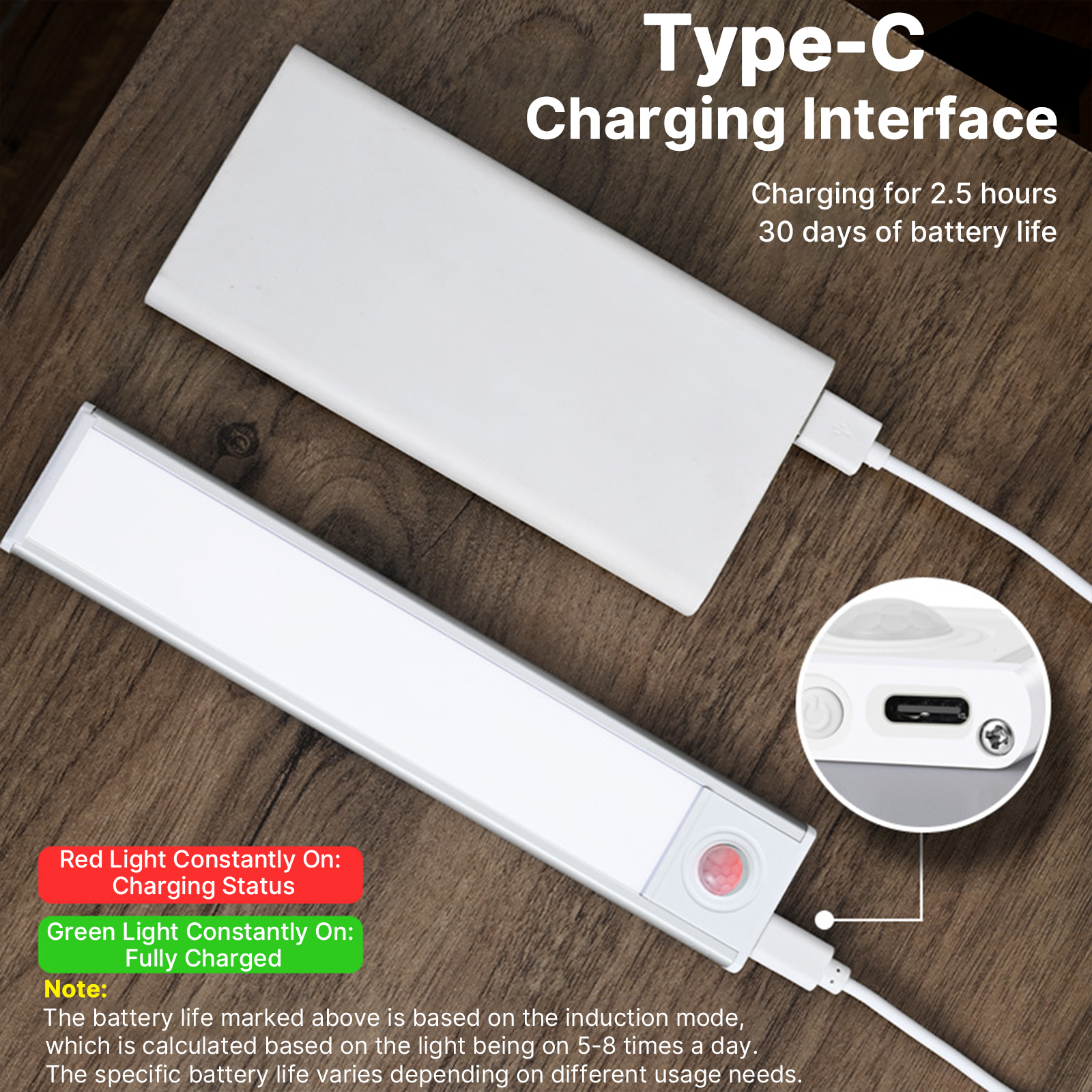 - This closet light comes with a Type-C charging cable, which can be easily charged via a power bank, computer or other devices with a USB port.