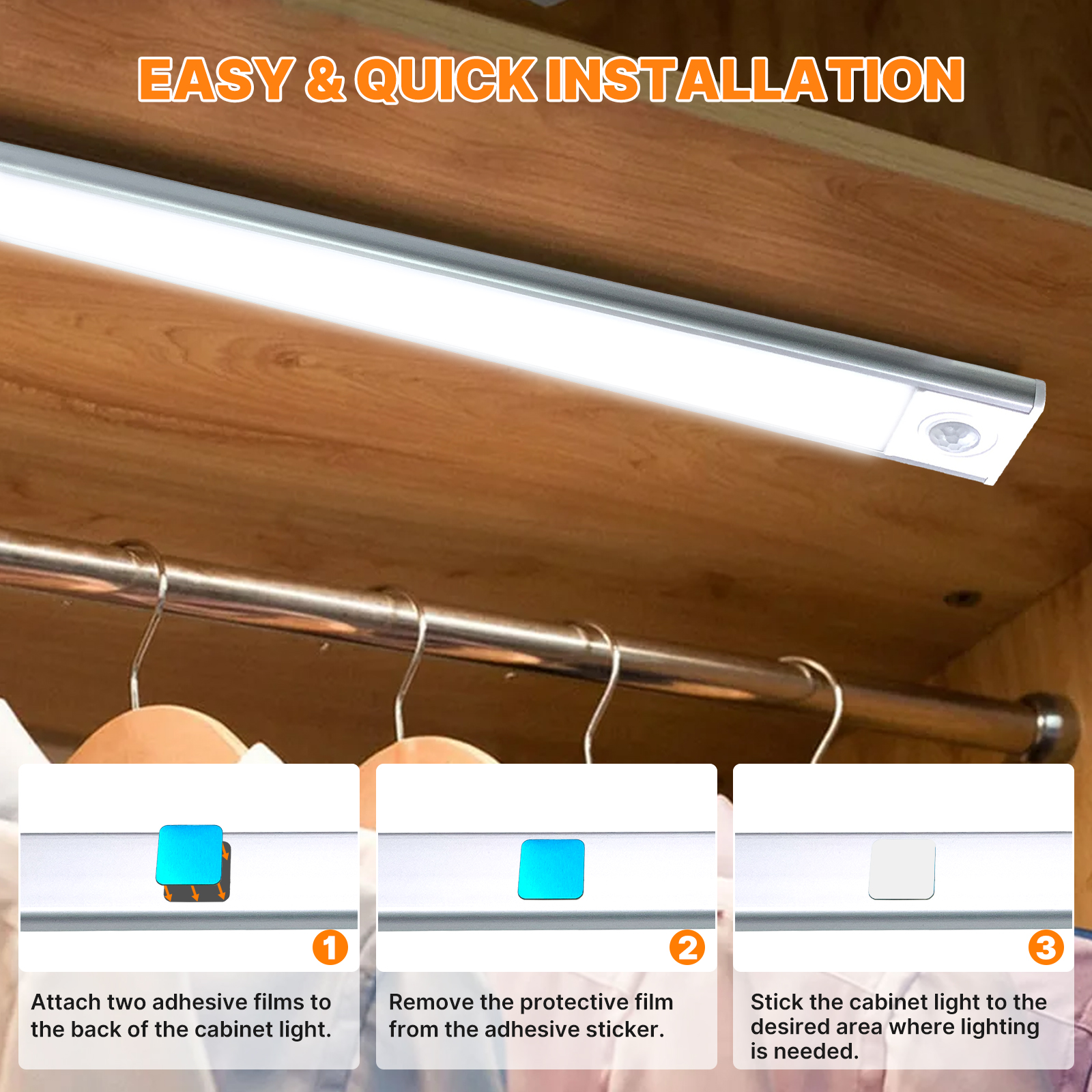 (2 PACK) 54-LED Under Cabinet Lighting, Automatic Dimmer Motion Sensor Light, 450mAh Wireless USB Rechargeable Night Light, 3 Modes & 3 Color Temps Closet Lights for Kitchen, Cabinet, Wardrobe, Stairs