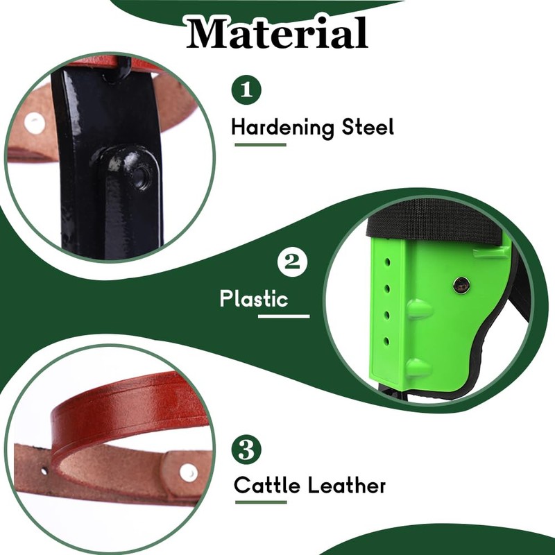 - 【Comfortable Straps】The belt is made of cowhide, which is strong and durable to avoid breakage. Adjustable leg straps can effectively reduce leg friction when climbing trees. Both cowhide straps and leg straps are adjustable for leg and stride size.
