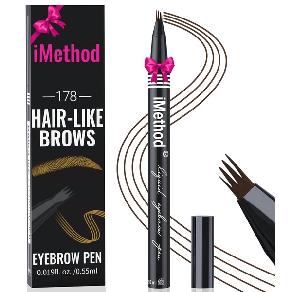iMethod Eyebrow Pen - Eyebrow Pencil with Micro 4-Fork Tip, Microblading Eyebrow Pen for Natural Hair-Like Brows, Long-Lasting Eye Brow Pencils for Women, Smudge-proof, Black Brown