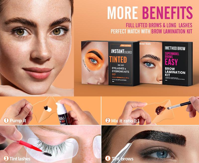 iMethod lash And Eyebrow Tint Kit - Up to 10 Applications - Black and Brown - With Brow Brush, Brow Tint, Longer-lasting Semi-permanent Brow Dye - Color: Black