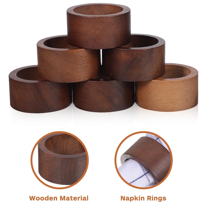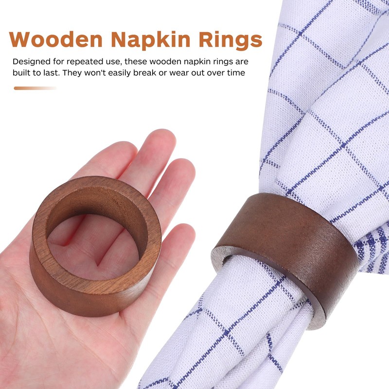 - CHARMING TABLE DECOR: Add an elegant and cozy touch to your dining table with these wooden napkin rings. Their rustic charm also makes them great for weddings or dinner parties. Designed in the compact size, they effortlessly adorn all napkins, enhancing your table setting with a touch of natural beauty. Designed for repeated use, these wooden napkin rings are built to last. They wont easily break or wear out over time