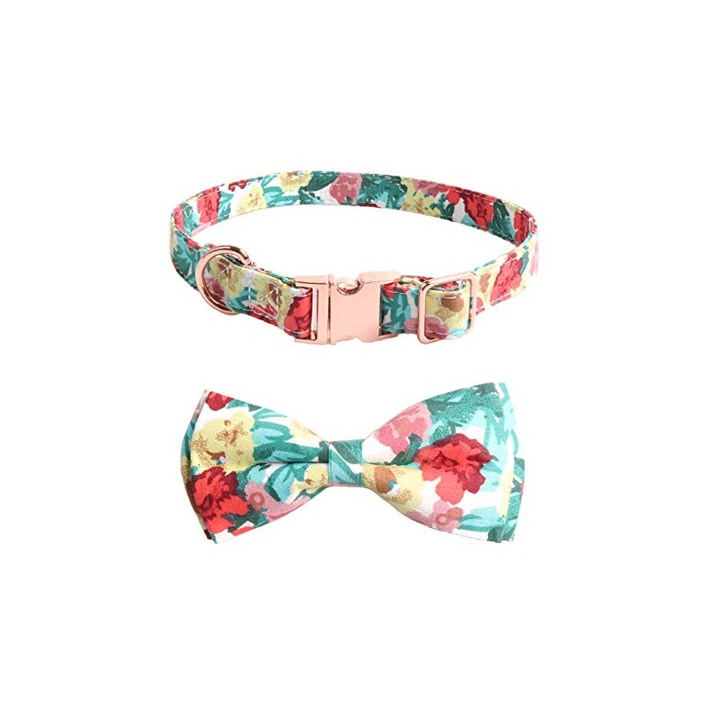 Imikoko Dog Collar with Bowtie, Strong and Durable Quick Release Plaid Dog Collar with Detachable Bow Tie for Small Medium Large Dogs (M, Floral)