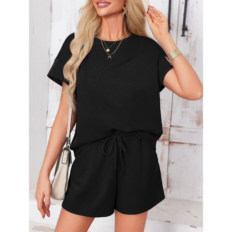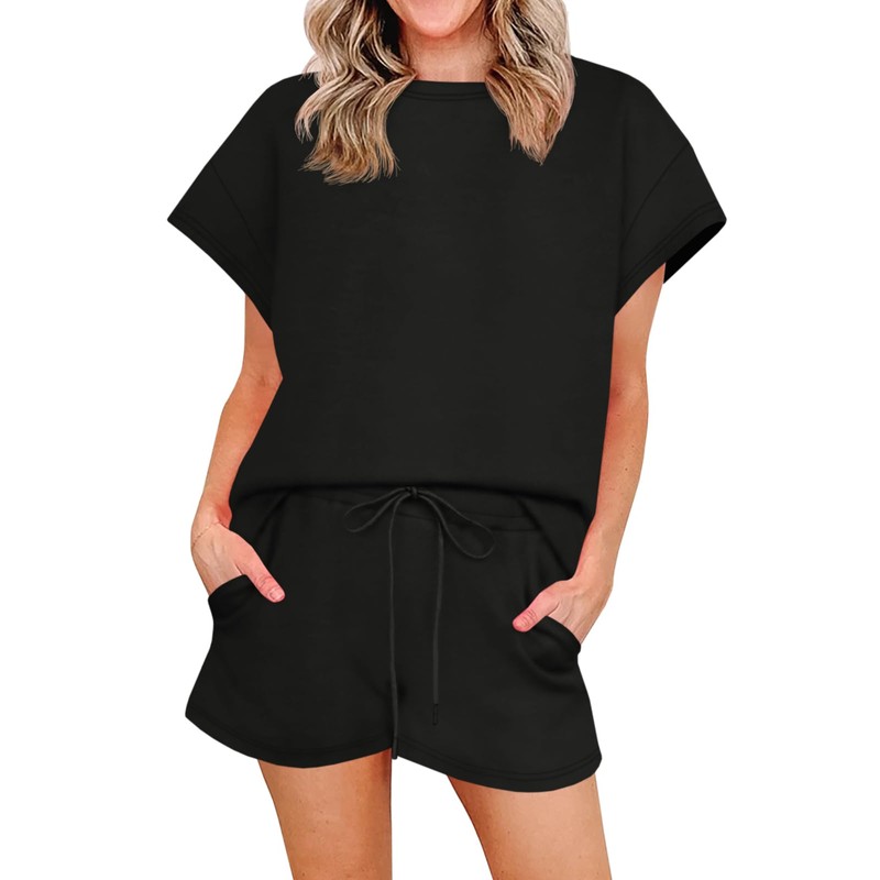 Imily Bela Womens 2 Piece Lounge Sets Summer Short Sleeve Tops and Shorts Set Airport Travel Outfits Black
