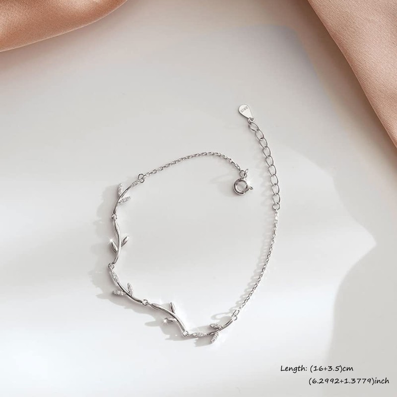 IMINI Crystal Leaf Bracelet for Women Girls Sterling Silver Danity Charm Link Bracelets Anklets Adjustable Chain Simple Elegant Jewelry Birthday Christmas Gifts for Daughter Bff