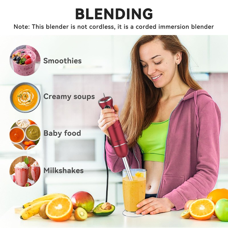 Special Feature:5 IN 1 Hand Blender, 304 Stainless Steel 4-Leaf Blades, 12-Speed Control, 1000w Full Copper Motor