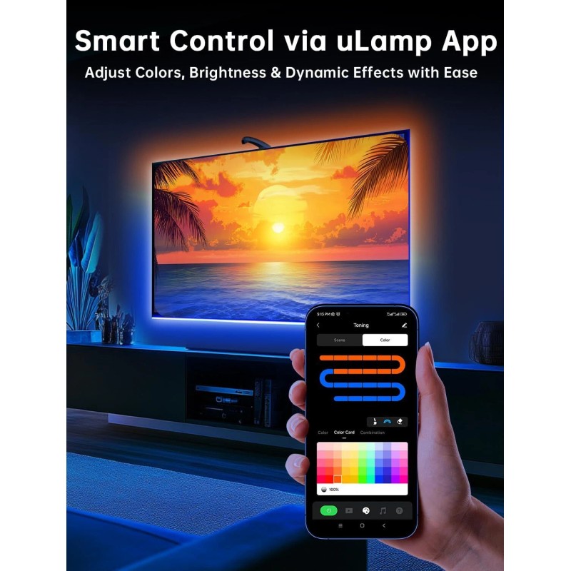 - Smart App Control: Customize and control your tv lights that change with tv effortlessly through the user-friendly uLamp app, offering personalized scene settings and seamless color adjustments, crafting the ideal ambiance for every moment.