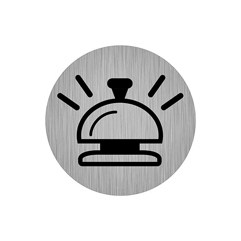 immi 4 x Stickers "Bitte klingeln for Hotel Reception", 95 mm Diameter, Round, Stainless Steel Look