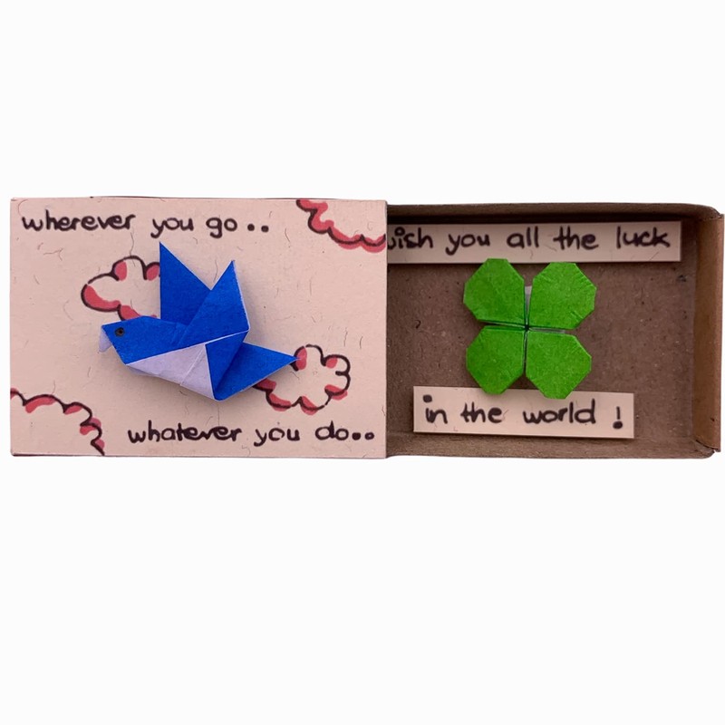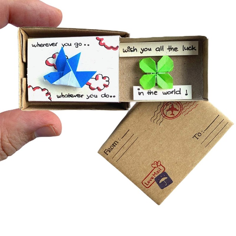 - Mini gift. Wherever you go, whatever you do … wish you all the luck in the world immi origami surprise small gift in the box. Mini origami bird and mini origami lucky clover