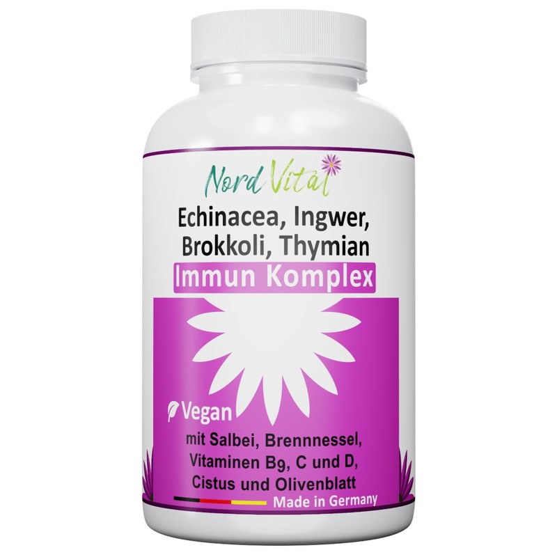 Immune Complex with 15 Active Ingredients - Echinacea, Broccoli, Ginger, Sage, Nettle, Cistus, Olive Leaf, Vitamins C, B9 and D, Zinc and Selenium - German Production