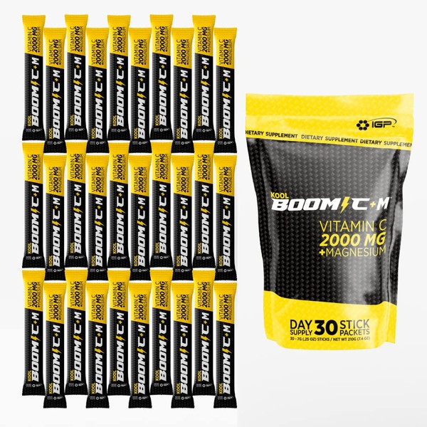 Immune & Genetics Protocols Kool Boom C+M - 30 Stick Packets - Vitamin C 2000 mg as Ascorbic Acid - Magnesium (Gluconate) Immune System Support