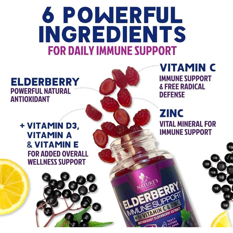 • 4. Immune Support Complex: Nature's Nutrition Gummies are easy, convenient, and nutrient-rich; packed with Elderberry and Zinc for immune support.