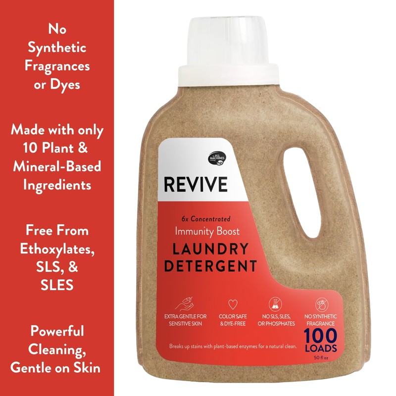 - REVIVE Immunity Boost Liquid Laundry Detergent is a powerful, 6x concentrated formula designed to tackle your everyday laundry needs WITHOUT the harsh chemicals or synthetic fragrances.