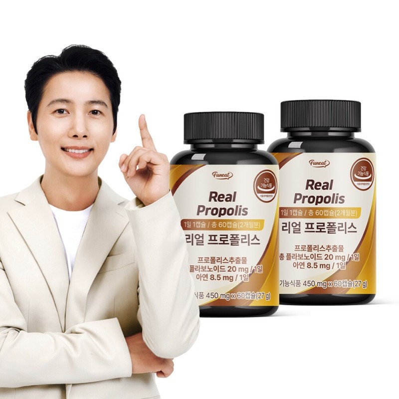 Immunity-Boosting Real Propolis 60 Capsules x 2 Bottles (4-Month Supply) / Flavonoid Immunity Supplement / 면역력 강화 리얼 프로폴리스 60캡슐x2병 4개월분 플라보노이드 면역력 영양제