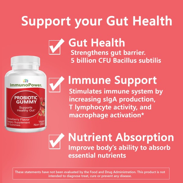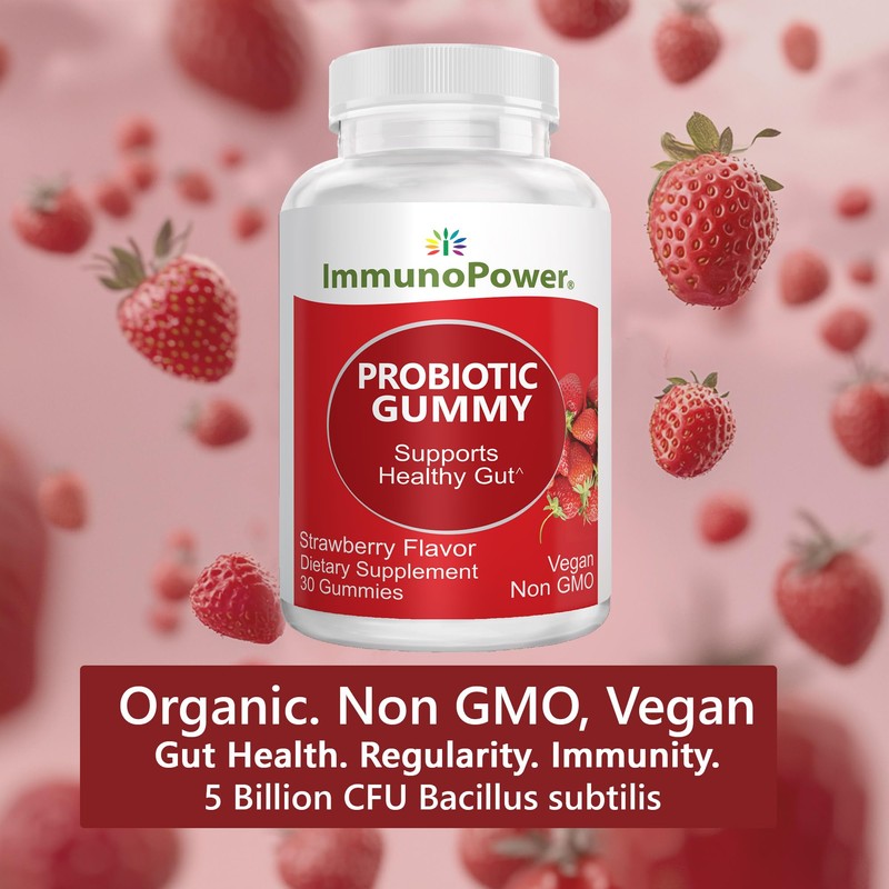 ImmunoPower ImmunoPower Organic Probiotics Gummies | 5 Billion CFU Probiotics for Digestive Health & Immune Support | DE111 Bacillus Subtilis | Strawberry | Non-GMO, | 30 Ct.