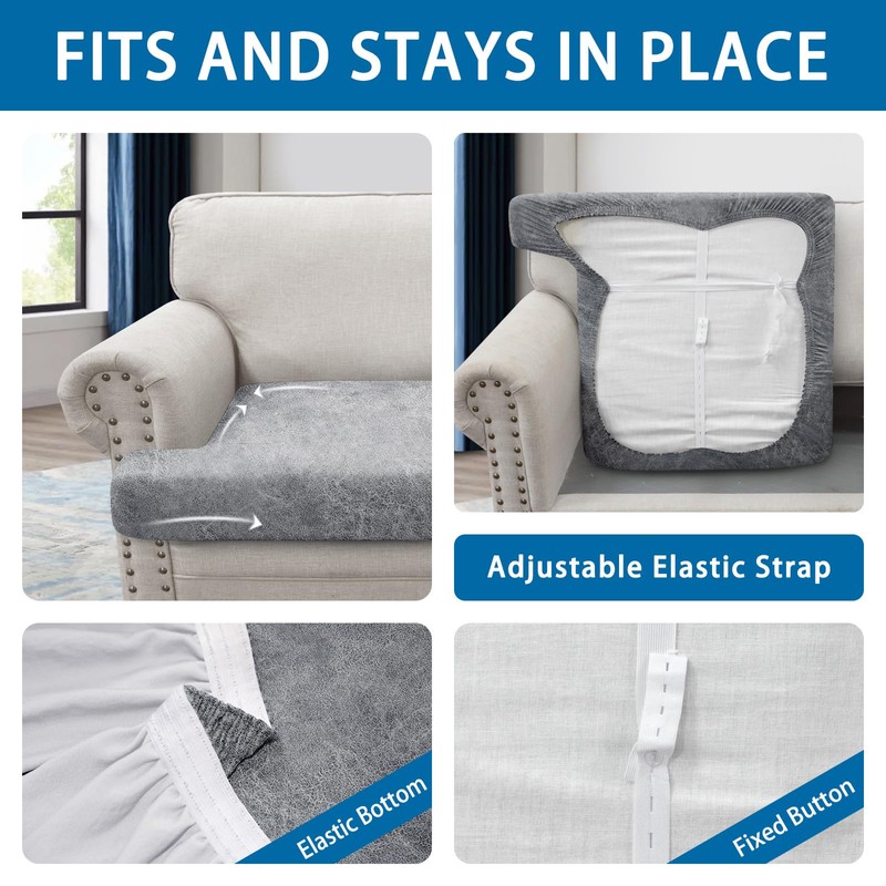 - FIRM FIT & EASY TO INSTALL: This cushion covers for couches and sofas fits perfectly. The elastic band at the bottom holds in place without shifting, keeping the sofa flat and beautiful, even with smooth leather sofa seat cushions. And the great elastic shower cap design allows you to easily remove or put the sofa cushion cover on when you need to wash them.