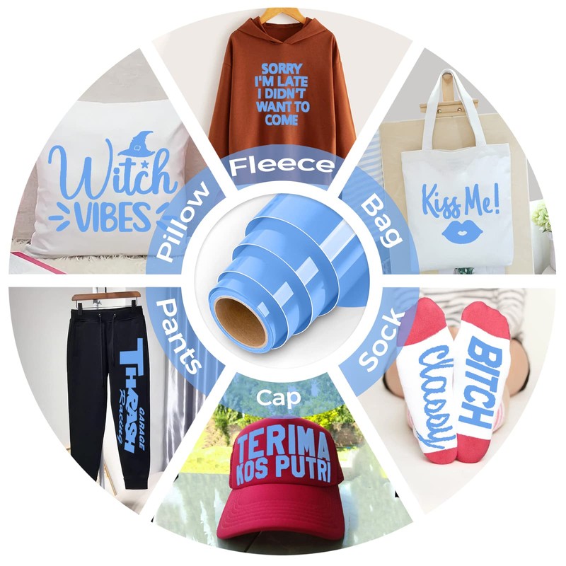 - 💝Must-have for Home Decor and Parties: Our htv vinyl comes with premium PET backing, it won't stick to cutting mat like paper backing, save your consumption to the greatest extent. Sky blue vinyl can DIY the pillows on the sofa, home clothes, cotton slippers, etc which is very suitable for parent-child interaction. When holding a party, you can make many decals and unique clothes. At Christmas, you can design your child's favorite pattern for the socks to put gifts. Child need a Christmas gift.