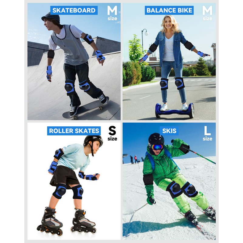 iMoebel Protector Set 6 in 1 Inline Protector Set Children's Protective Equipment, Adjustable Knee Pads, Elbow Pads, Wrist Guards for Skating, Driving, Scooter, Skateboard, Blue, M