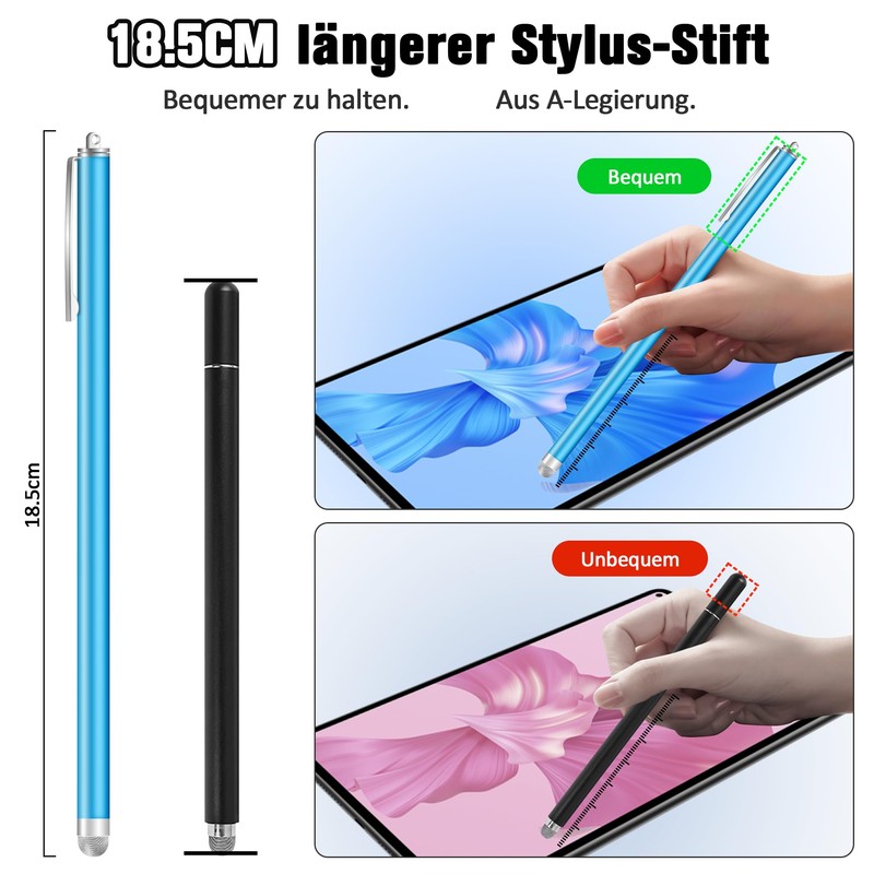 iMoebel Tablet Pen Pack of 2 Fibre Tip Touchscreen Pens 18.5 cm Extra Long with Clip, Universal Passive Stylus Touch Pen Compatible with Capacitive Touch Screens Mobile Phones Tablets