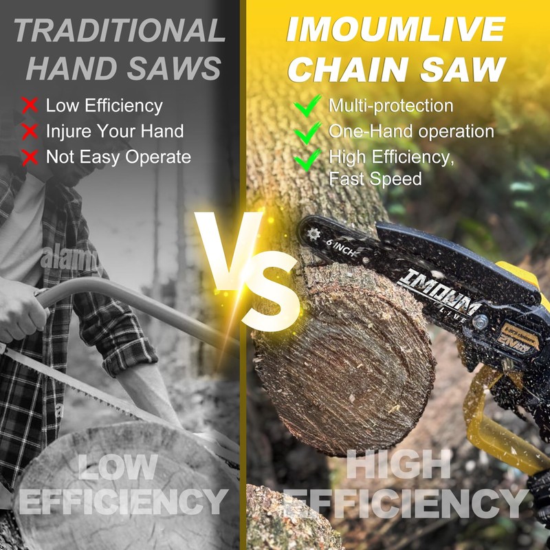 IMOUMLIVE 2-IN-1 Cordless Pole Saw & Mini Chainsaw, 21V 3.0Ah Battery Powered 6 Inch Electric Pole Chainsaw, 6.6 LB Lightweight, 14.8-Foot MAX Reach Pole Saw for Tree Trimming