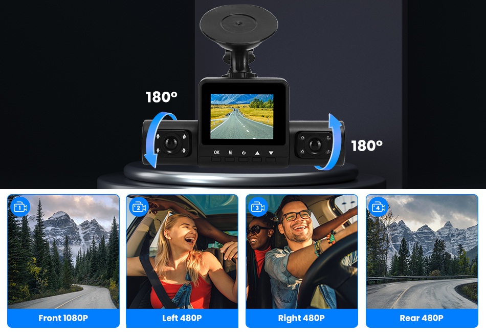 - Resolution: 1080P Front, 480P Inside Right&Left, 480P Rear