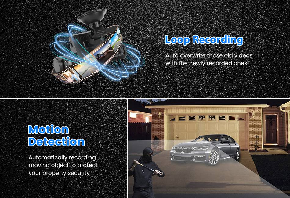 - Support Function: Loop Recording, Motion Detection, Infrared Night Vision