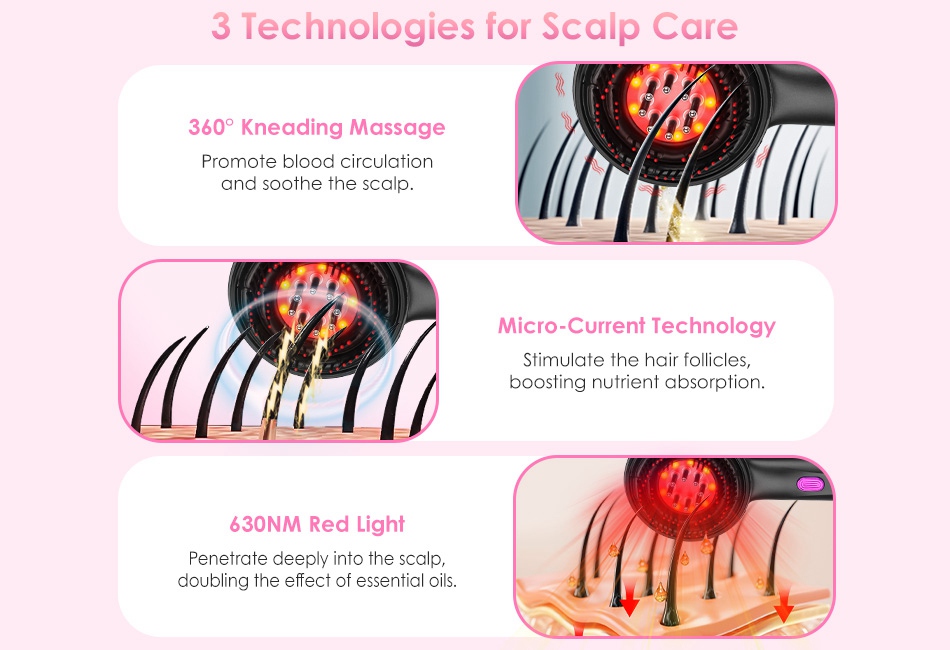iMounTEK 3 in1 Hair Oil Applicator Head Massager Scalp w/ 3 Modes Rechargeable Waterproof