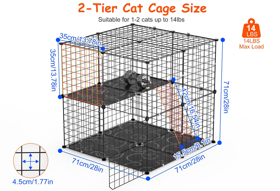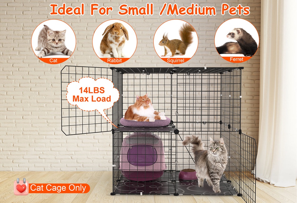iMounTEK Cat Cages Indoor, 2 Tier Cat Enclosure with Climbing Ladder for 1-2 Cats