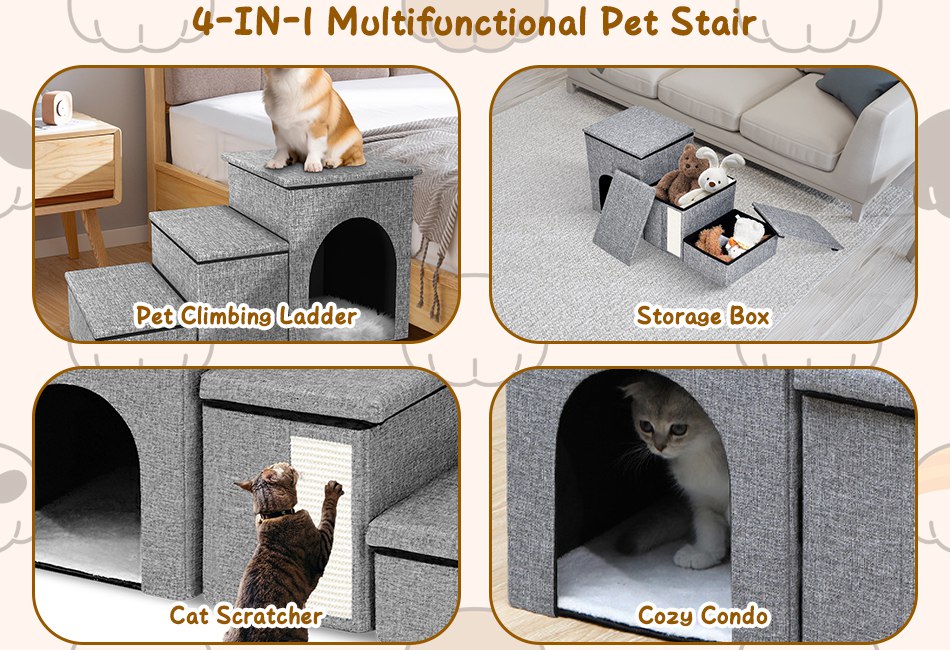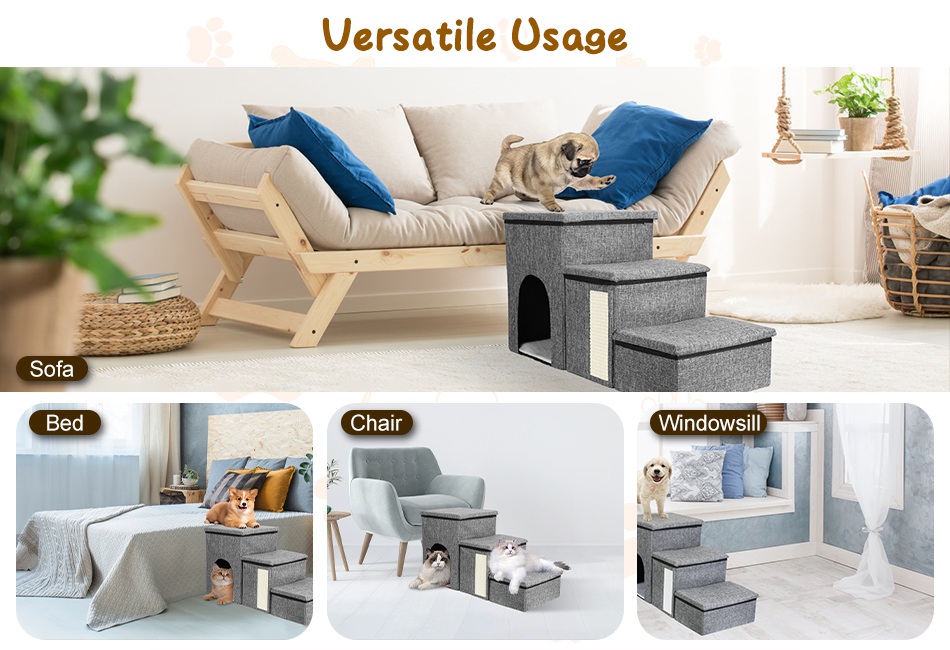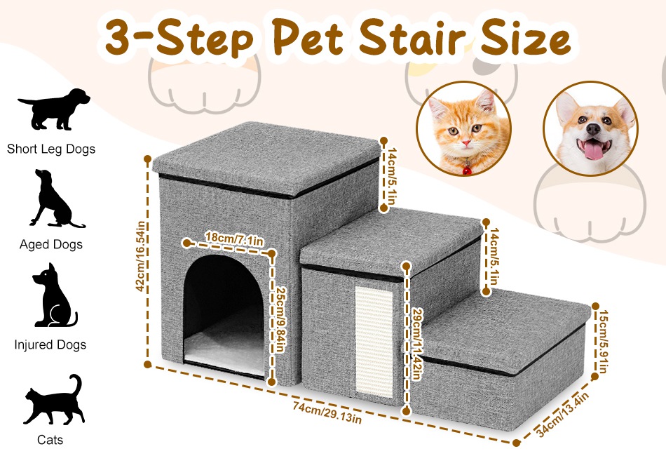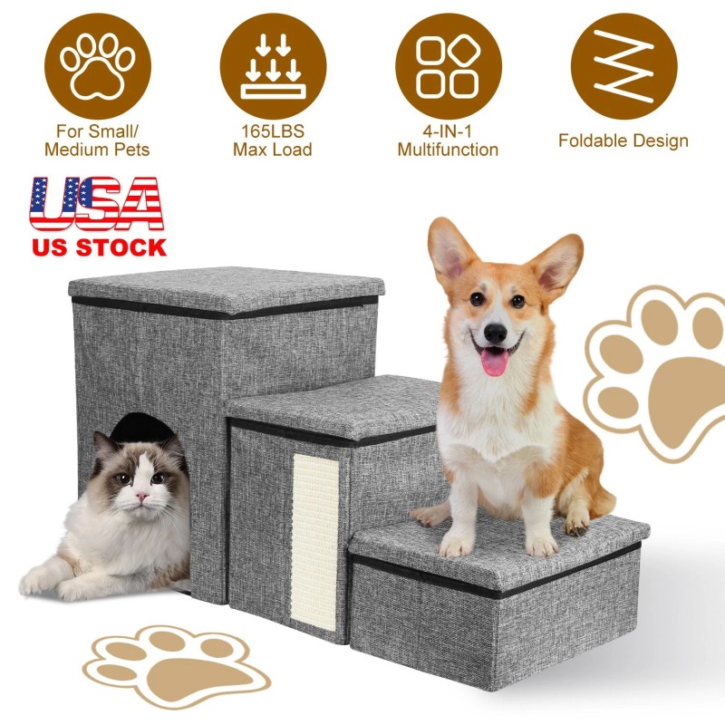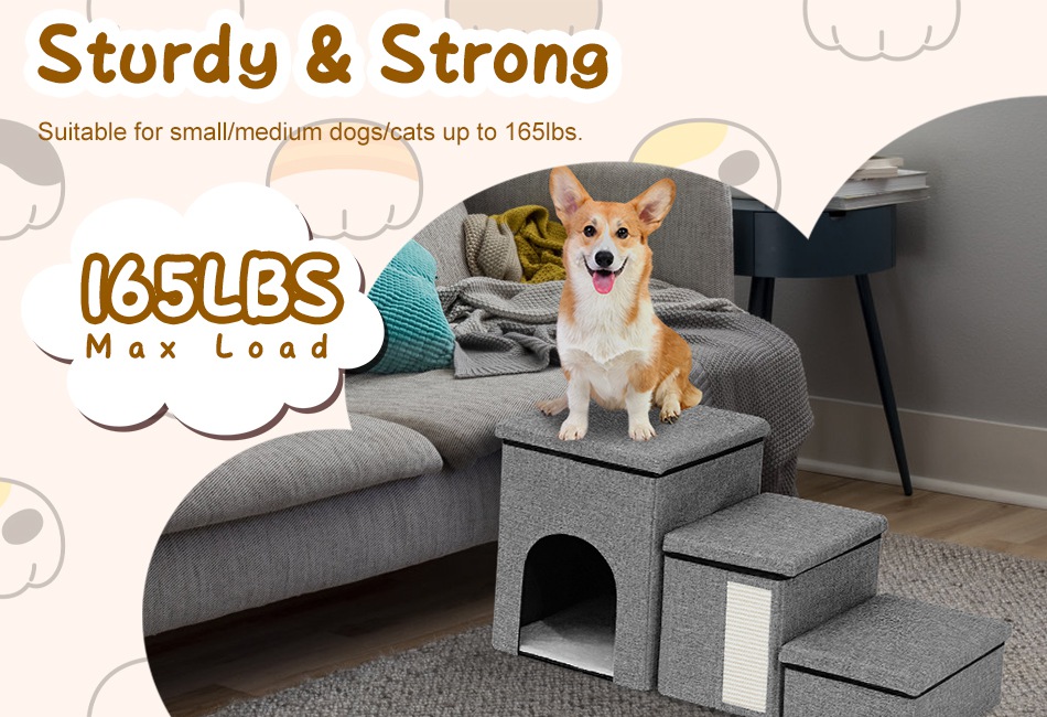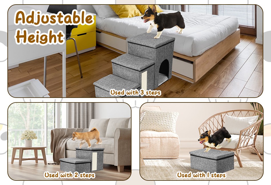 iMounTEK Dog Stairs for Small Dog,3-Step Dog Ramp for Bed & Chairs Non-Slip Bottom Design