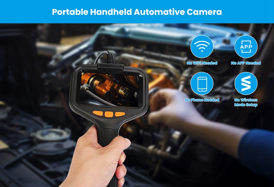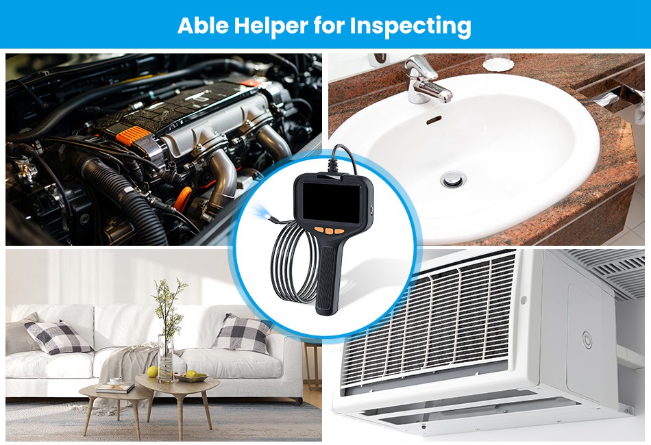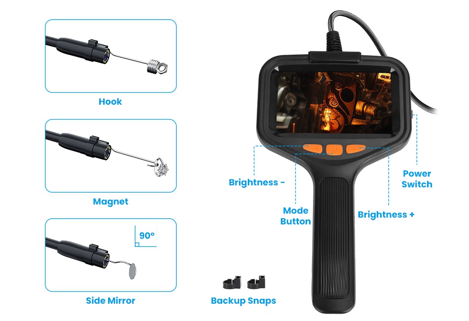 • Wide Applications:Featured with smart digital display,extra long hardwire and lens with light,our borescope camera makes itself a helpful assistant for close up viewing of engine cylinder,valves,piston,spark plugs,diesel,electrical work inside wall,AC pipe,machine fix,etc.. For convenient operation,we also offer accessories including hook,magnet,side mirror and 2 backup snaps.