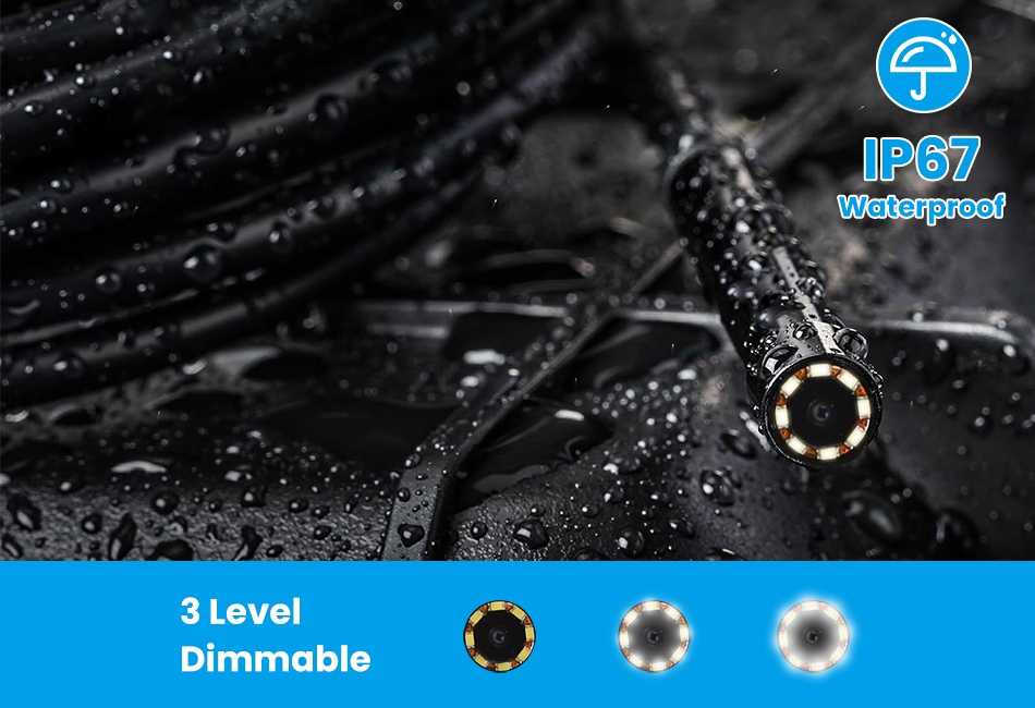 • IP67 Waterproof Lens:Endowed with 8 LED beads,our endoscope camera with light is capable of capturing a clearer picture for you. The scope camera equips with 3 Level adjustable brightness and excellent IP67 waterproof performace that ensure a clear a view even in dark and wet conditions.