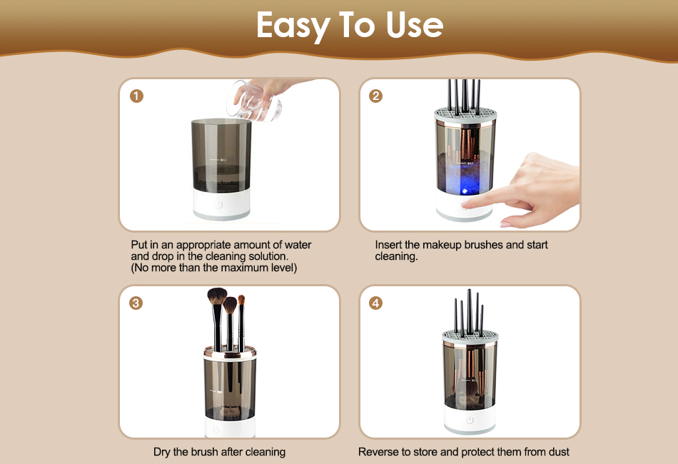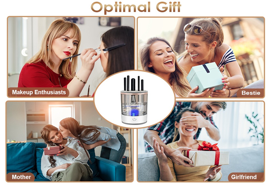 Looking at so many makeup brushes to wash, instantly feel a headache coming on? Our makeup brush blender cleaner can perfectly solve such dilemma with the sonic vibration cleaning technology. Designed to automatically clean for 5 minutes once started. Also come with a brush cleaner mat for removing the big partical. Apart from cleaning, our electric make up brush cleaner machine can also dry and store makeup brushes. Suitable for all types of brushes, like powder brushes, foundation brushes and eye shadow brushes etc.. USB powerd and easy to carry. A thoughtful gift for wife, girlfriend, mother, sisters, besties and makeup enthusiasts etc., especially a perfect gift choice for Valentine’s Day! Features: