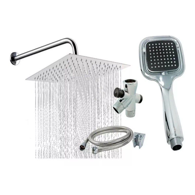Regadera Cuadrada Tipo Lluvia + Regadera De Teléfono Cromada