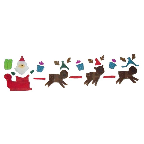 Impact Innovations Christmas Reusable Gel Window Clings, Santa's Sleigh with 3 Reindeer and Presents (27 Clings, 1 Sheet)
