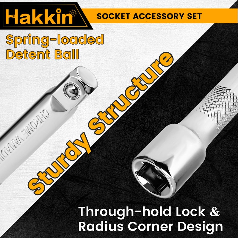 - 【Premium Material】Hakkin socket extension bar set is made of heat-treated chrome vanadium steel with rust-proof and corrosion-resistant.