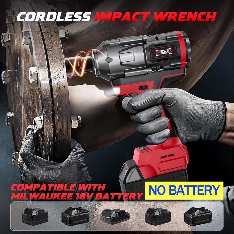 Cordless Impact Wrench is Compatible with Milwaukee M18 Lithium-Ion Battery( NO INCLUDE BATTERY), do not require wires and sockets, and can be flexibly applied in the workplace and outdoor environment. Integrated low-pressure protection ensures safety and reliability.