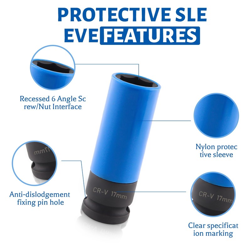- Chrome molbdenum material: the 1/2 wheel nut sock is made of chrome molybdenum steel. Chrome molybdenum materials usually provide excellent strength, wear resistance and toughness.