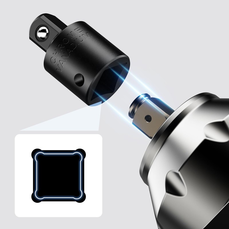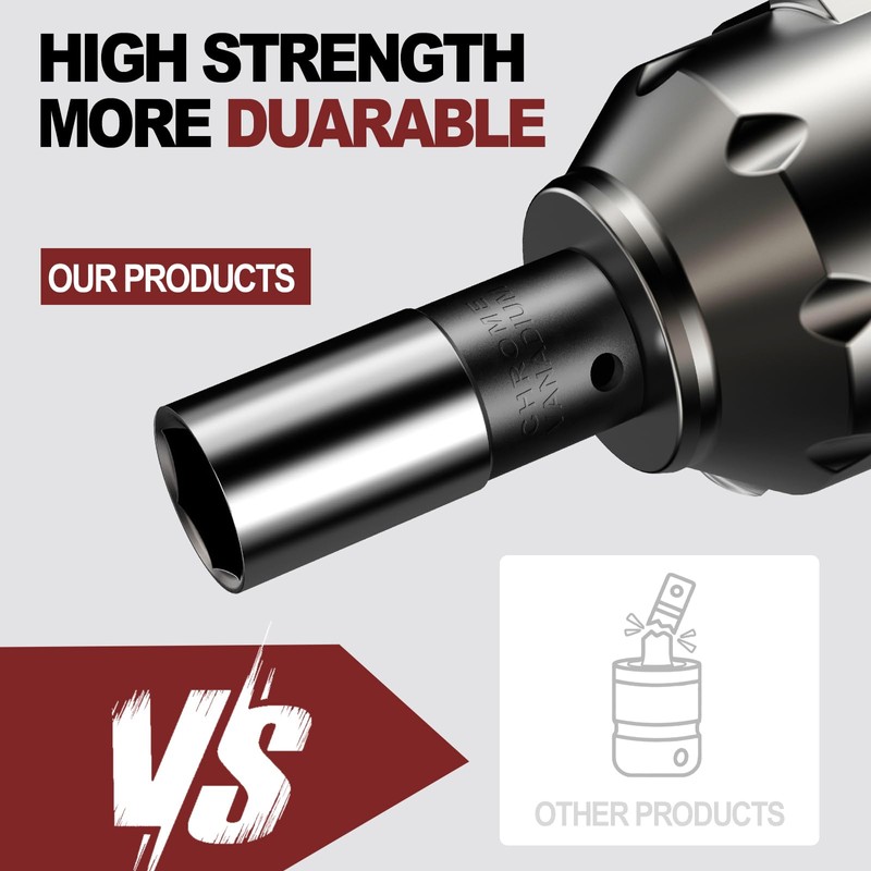 • Industrial-Grade Chrome Vanadium Steel: Drop-forged and heat-treated for 2X higher torque resistance vs standard adapters. Built to handle 200+ Ft-lbs impact loads – survives rust, grease, and extreme garage/workshop conditions