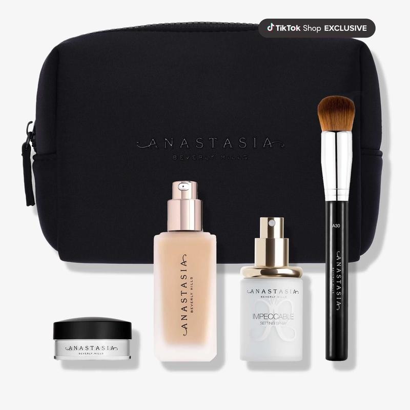 Get your NEW Impeccable Blurring Second-Skin Matte Foundation, plus an A30 Pro Brush to apply it, Mini Loose Setting Powder to lock it in, Deluxe Mini 24HR Blurring Matte Impeccable Setting Spray to extend wear up to 24 hours, and a sweet neoprene bag to stash it all.