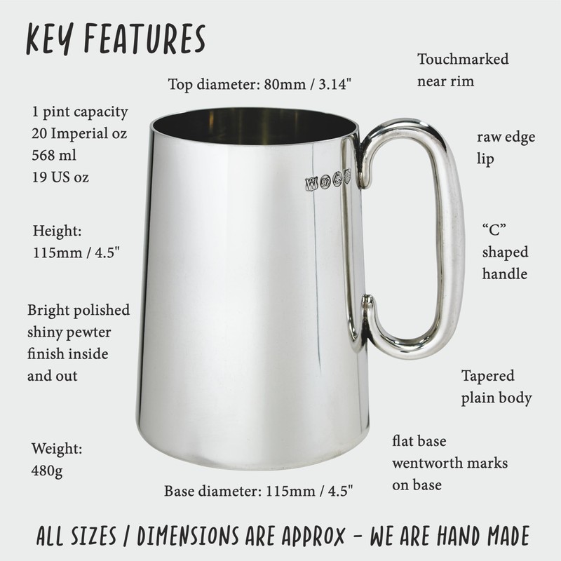 - Ready to Impress: Supplied in a sturdy carton box, standing at 115mm tall with a base diameter of 90mm, and weighing approximately 480g, this tankard is a substantial and stylish addition to any collection.