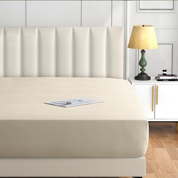 Imperial Rooms Brushed Microfibre King Size Fitted Sheet 25 CM Easy Care Soft Bed Sheets Fade Resistant (Cream)