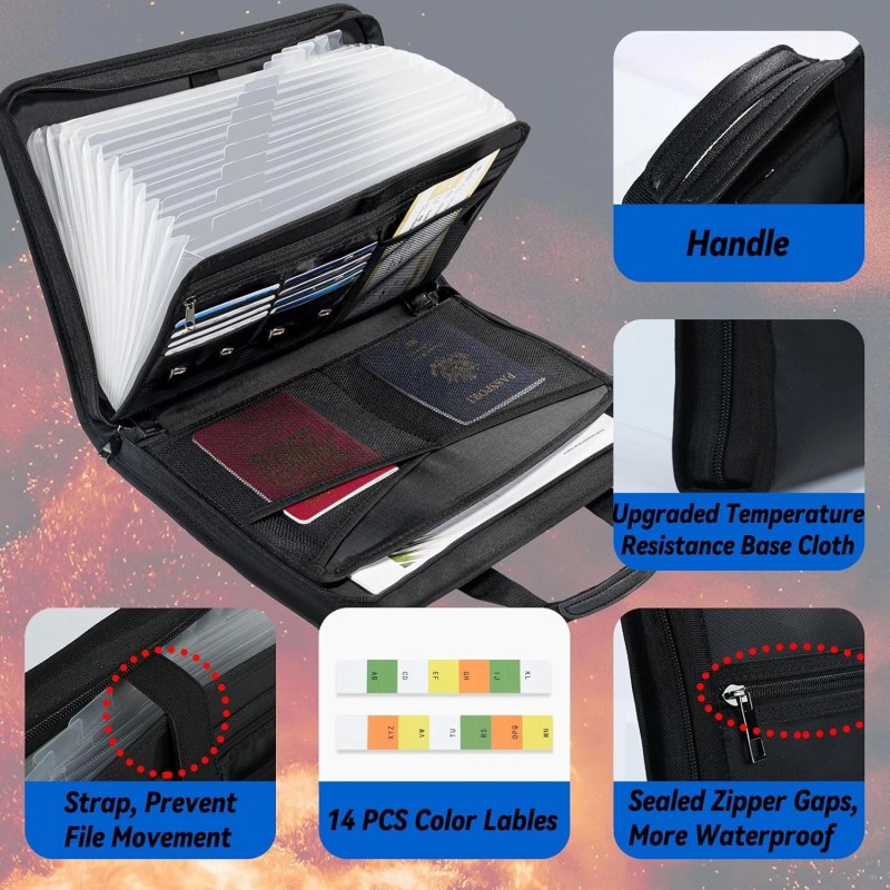 Important Document Organizer Fireproof Safe, 13 Pocket Accordion File Folder w/H