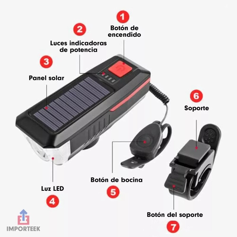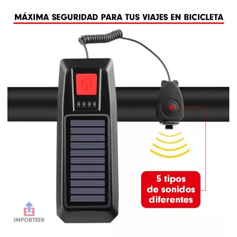 Importeek Lampara Led Bicicleta Recargable Usb Solar Delantera Timbre