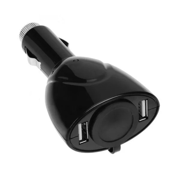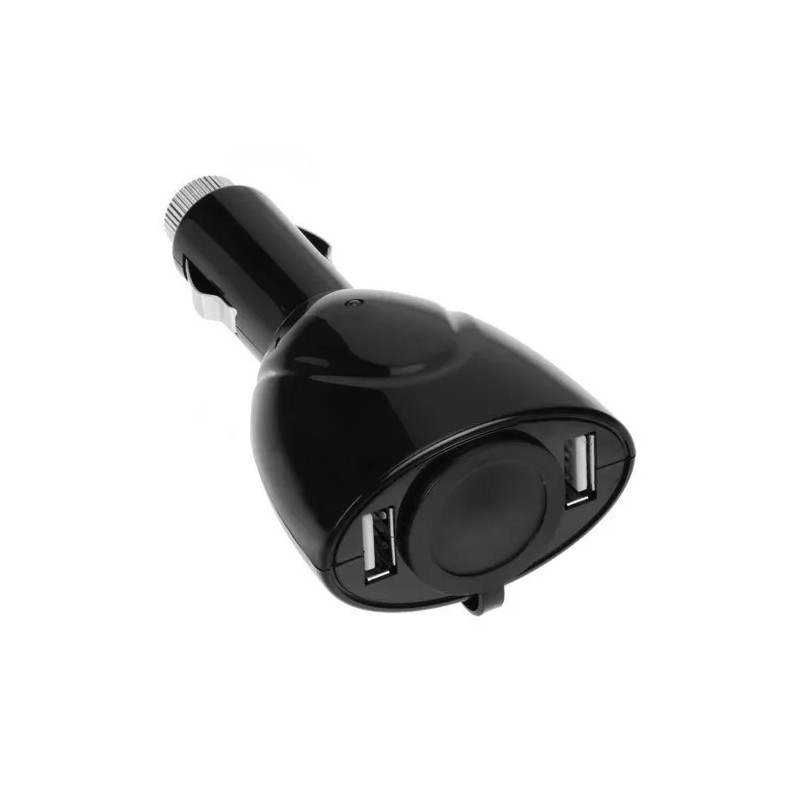 Importer520 Black 2-Port USB Car Charger Vehicle Power Adapter with Extra Socket