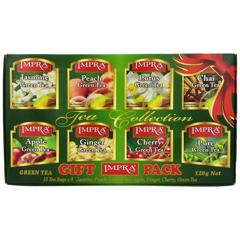 Impra Flavored Green Tea Gift Pack (8 Flavors), 80-Count Tea Bags (Pack of 5)