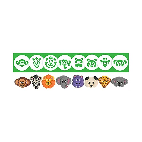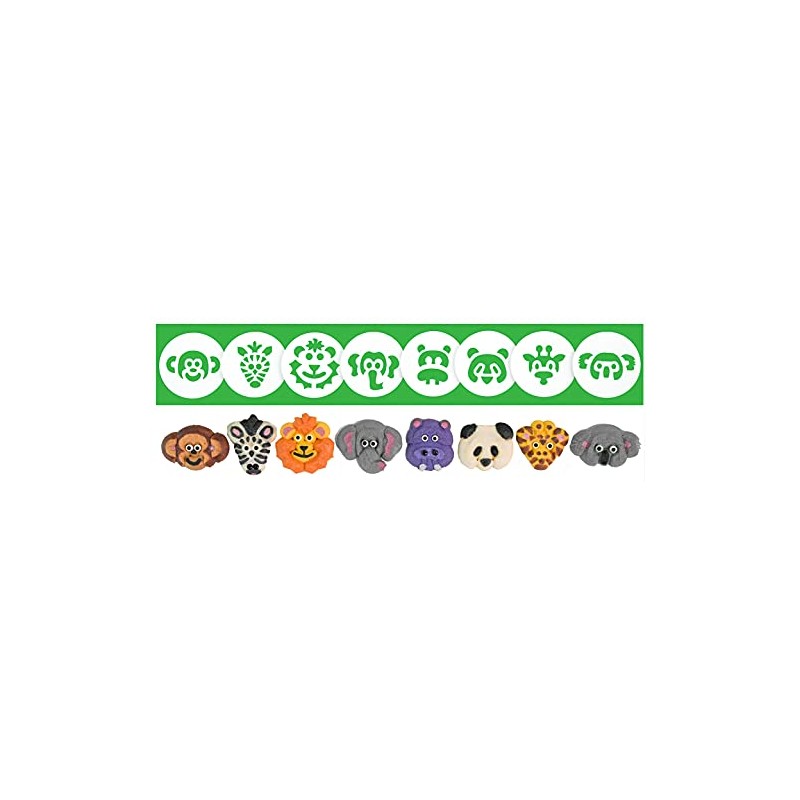 - 8 COOKIE PRESS DISKS IN 8 FUN DESIGNS: Monkey, Zebra, Lion, Elephant, Hippo, Panda, Giraffe and Koala.