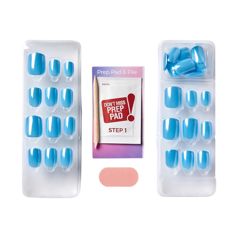 imPRESS KISS imPRESS No Glue Mani Press-On Nails, Color FX, 'Meta', Medium Blue, Short Size, Squoval Shape, Includes 30 Nails, Prep Pad, Instructions Sheet, 1 Manicure Stick, 1 Mini File