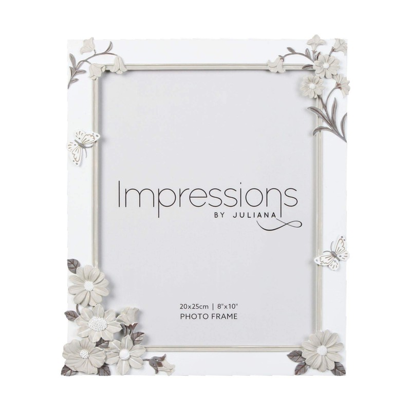 A beautifully designed grey resin photo frame with white flower design 8' x 10' aperture from Impressions. With it's attractive white flower detailing this grey resin frame will look great in any home. Freestanding it will look great on display perfect for showcasing those treasured photographs on top of a mantelpiece or on a bedside table. Paired with branded packaging this makes for an excellent piece of giftware or as a self purchase.