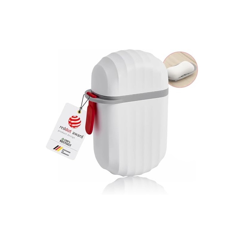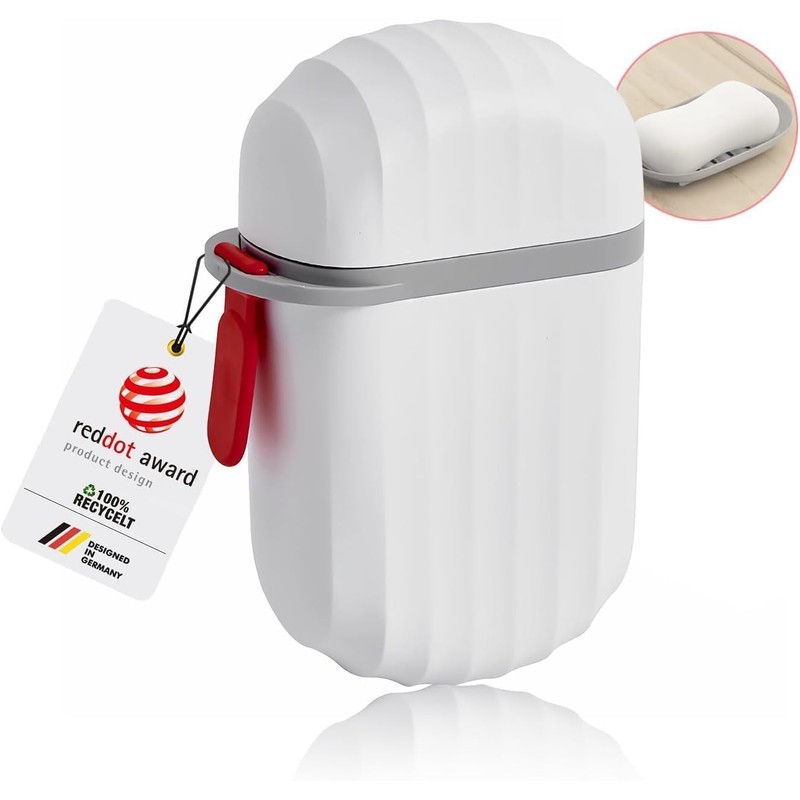 - Robust and sustainable design: our improved soap box, awarded the Red Dot Design Award, combines functionality with ecological responsibility. Made from 100% recyclable, environmentally friendly PP material, it provides a durable and easy care solution for your travel needs.