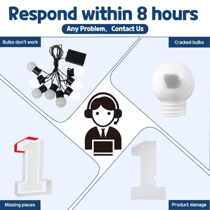 - 【Need Assembly】Assembly requires a hot glue gun, and we have pre-cut the marquee light up numbers into several pieces. You can refer to the instruction manual to assemble the marquee numbers 3 feet tall using a hot glue gun.